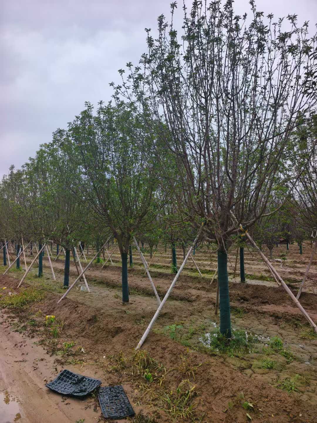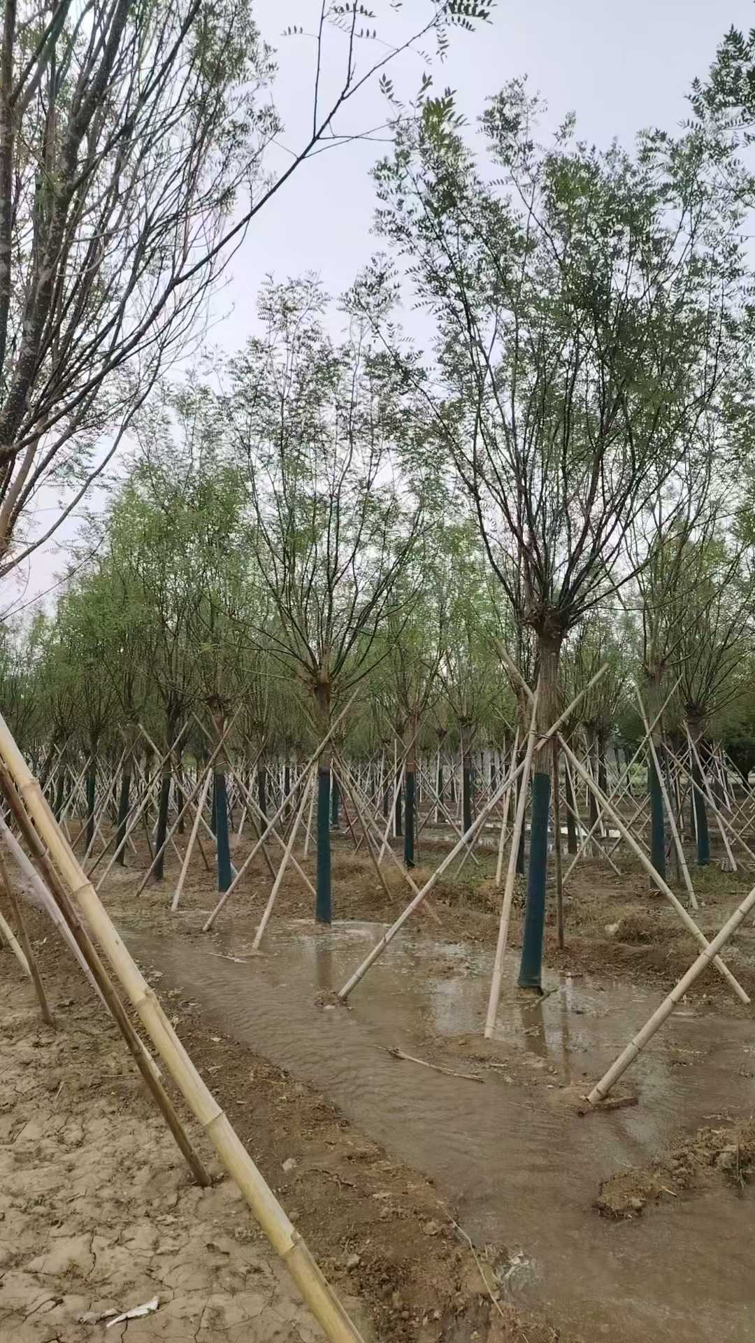 假植國槐的核心價值就在于顯著提高移栽成活率和效果,移栽時間寬泛,移栽成活率高,成景時間短,是目前大規格綠化苗木比較常用的育苗方式。